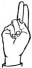 На ћирилици написано ЕЛМА СОВИЉ састоји се из 9 слова [?]. Исписано ћириличном једноручном азбуком за глувонеме: